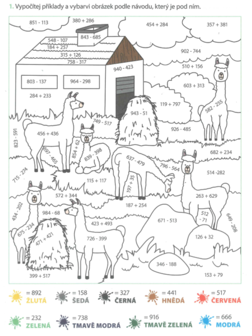 28. Procvičte si sčítání a odčítání do 1000. Obrázek je potřeba stáhnout a vytisknout.